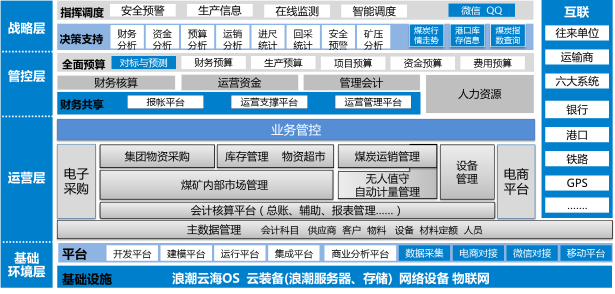 煤炭是我国的基础能源和重要原料,以煤炭为主的能源结构短期内难以改变。煤炭企业集团多以煤为主业,多元开展,集团化、多元化,区域分散成集团管控难度很大。从外部环境看,行业运行趋势向好,但淘汰落后产能需要持续进行,企业面临的困难依然较多。从企业内部看,粗放式开展的模式已经不可持续,而利用传统手段降本增效已接近极限。与此同时,以大数据、互联网+为代表的信息技术迅速开展为煤炭企业转型升级带来新选择。利用大数据、互联网+,寻求实现技术升级、管理提升,构建的新型开展模式,增强集团管控,实现业务精细化管理,降本增效成为整个煤炭行业长远开展的必经之路。