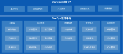 基于禅道产品管理、gitlab、Docker、Jenkins等开源框架及技术,在私有云环境构建完整的Devops开发平台,一是给所有开发者给予统一入口,实现产品开发的全流程管理;二是实现自动化的敏捷开发、持续集成等能力;三是给开发人员给予Devops支撑技术学习和培训和研讨环境,实现经验共享及能力提升。四是给予统一的云资源申请及配置,供各个自研产品的灵活发布和部署。DevOps开发平台包括DevOps门户统一视图、项目管理、持续构建、管控中心等子系统,系统功能架构如下: